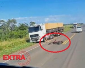 Na colisão, a vítima foi arremessada debaixo da carreta, resultando em fraturas nas pernas, além de outros ferimentos.