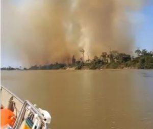 Vilhena, RO - Neste fim de semana, pescadores capturaram imagens impressionantes de um incêndio de grandes proporções em solo boliviano, próximo a pousada Adão Pirarara às margens do Rio Guaporé, em Pimenteiras do Oeste.